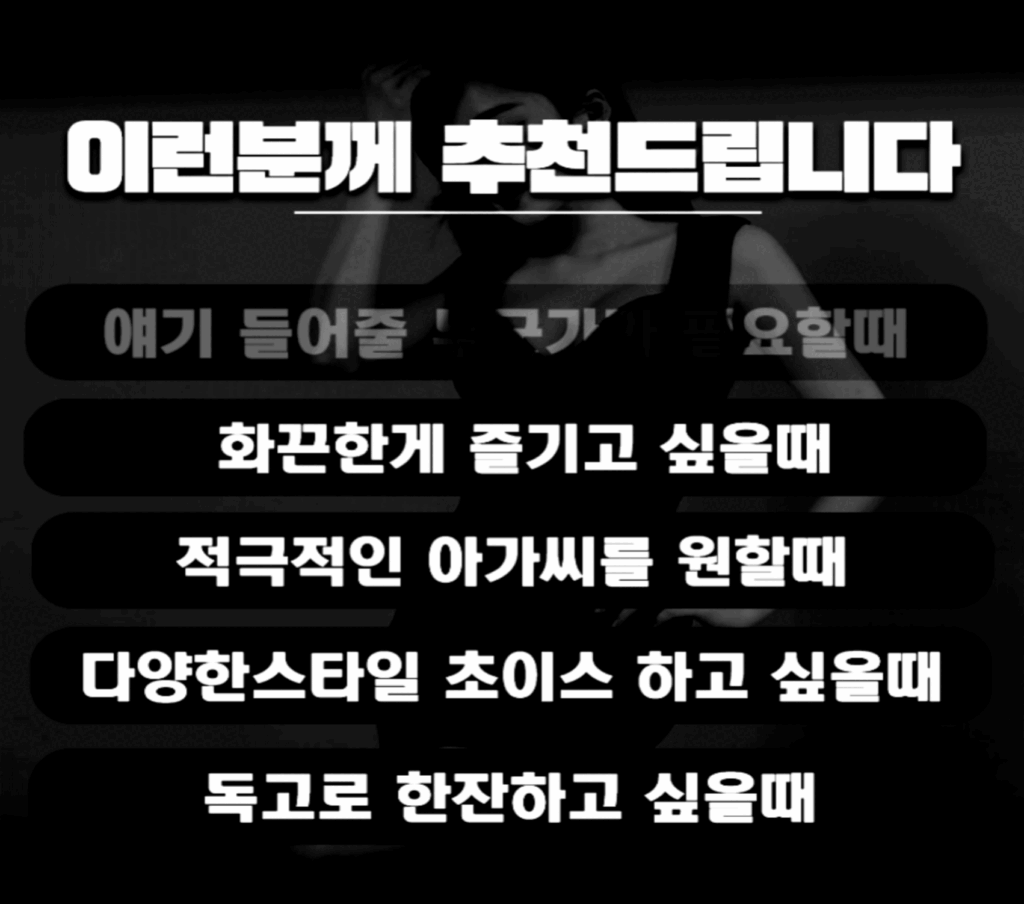 - 韓国・釜山・海雲台の高句麗ルームサロンです。 ルームサロンの説明 2026-02-06ハイルームサロン일프로イプロルームサロンとは、その名の通り、韓国の上位1%だけが入ることができると名付けられたルームサロンの名前です。 すべてのお客様は予約制と会員制(メンバーシップ)で運営されており、現存する韓国最高級の娯楽店です。 直接その店の社長が自分の店を自慢するために名前を1%に付けたのではなく、周囲でそう呼ばれているので、本当に自他共に認める上位1%のルームサロンと言えるでしょう。 一番気になるのは価格ですよね 2人で訪問する場合、最低500万ウォンから1000万ウォンまですぐに出てくる非常に高級なルームサロンです。 しかし、いくらお金があってもメンバーシップで運営されているため、ある程度名前が知られているか、親しい関係がなければ訪問できません。 芸能人級の容姿とある程度の学歴があり、ハイレベルな会話も可能な高級ルームサロンです。 ロウルームサロン正統ルームサロン一般的に最も知られているルームサロンであり、ルームサロンの基本である正統なルームサロンです。 ロウアップ店とハイアップ店の境界にあるルームサロンで、価格帯はそれほど安くありません。 有名な正統派ルームサロン店としては、タイムズスクエア・ソンヌン、サムソンドン・ラマダホテル、ヒルトップ、YTTなどがあります。 店舗によって異なりますが、通常女性マネージャーが約150名出勤しており、循環がスムーズです。 料金は2名で150〜200万円程度を目安に、ルーム料は4〜5万円程度です。 1店舗あたり約20名のマダムと約100名の営業部長が常駐している大型ルームサロンで、どのマダムや営業部長に会うかでその夜の雰囲気が変わります。 変種ルームサロン 変種ルームサロンは変種の形態のルームサロンで、既存のルームサロンはほとんどが女性マネージャーがホール服を着用してサービスを行っています。 しかし、変種ルームサロンでは、よりテーマを持った服装を着用するルームサロンの形態です。 最も代表的な変種ルームサロンはランジェリールーム、シャツルーム、レギンスルームなどがあり、ランジェリールームではホール服の代わりにランジェリーを、シャツルームではホール服の代わりにシャツを、レギンスルームではホール服の代わりにレギンスを着用するのが特徴です。このような変種レギンスルームは時代を反映していることが多く、ランジェリールームはランジェリーが流行していた2000年代初頭から盛況で、現在はランジェリーの流行が過ぎてオフィスレディが増えたため、シャツルームが流行するようになりました。 現在、2021年にはインスタグラムを通じて多くの女性が運動している写真を投稿することが流行し、それに伴いレギンスルームが盛況となりました。 このような変種ルームサロンは流行に左右されやすい業種であり、次に流行する変種ルームサロンがどのようなものになるのか、期待が高まります。 ルームサロン利用のヒント ルームサロンの利用のコツはいくつかありますが、ほとんどの方はご存知だと思います。 ここでのルームサロン利用のヒントは、ユーザーが最も気になるが詳しくは書かれていない種類で、ルームサロンに一人で行ったときの価格や取るべき行動、ルームサロンのアフターサービスについて扱おうと思います。 ルームサロン 一人でルームサロンを初めて体験する方や、数回しか利用したことがない方は、一人でルームサロンに行くことに未知の不安を抱えるでしょう。 ルームサロンに一人で行ってもいいのか? または ルームサロングを一人で行ったときの金額はどのくらいが適当なのか、一人で来ると軽く見られないか気になる方が多いでしょう。 まず、ルームサロンに一人で行ってもいいかという質問にはYESです。 実際には各ルームを見たことがないだけで、ルームサロンを一人で訪れる方はかなり多いです。 ルームサロンの利用客の30%以上が一人で訪れます。 店内では、一人で来店されるお客様も、複数で来店されるお客様と同等に扱っており、好評です。 ですので、ルームサロンに一人で行くことに恐れを持たず、ぜひご利用いただければ幸いです。 ルームサロンの料金について説明いたします。 まず結論から言うと、ルームサロンを一人で訪れると、二人で訪れるよりも価格が少し高くなるのは事実です。 その理由はテーブルセッティング費とルーム代にあります。 ルームサロンを一人で訪れる場合でも、2~3人で訪れる場合でも、テーブルセッティングは同じように行われます。 おつまみは言うまでもなく、一人で来てもウイスキーを基本の1本はスタートしなければならないため、複数人で分けて支払う金額を一人で支払わなければならず、金額が上がる仕組みです。 また、ルーム代も複数人で支払うものを一人で支払わなければならないため、基本的に一人で訪問すると、2〜3人で訪問するよりも1.2〜1.3倍高い価格が